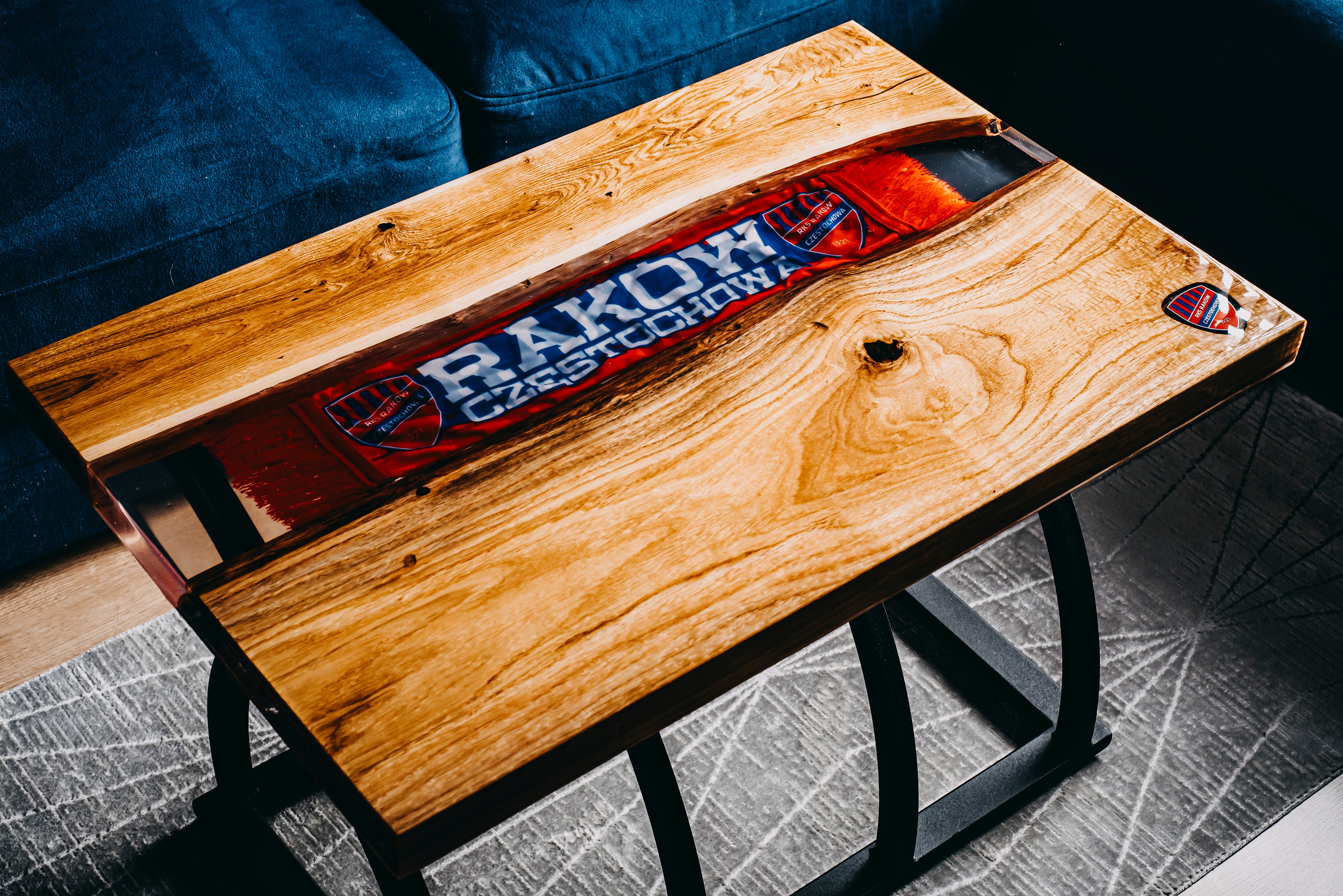 Personalizowany stolik kawowy z żywicy i drewna – unikatowy design